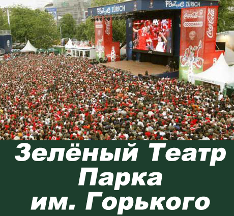Зелёный театр Парка им. Горького – это уникальная московская концертная площадка, расположенная в живописном парковом центре города на берегу Москвы-реки, со своей историей и особой атмосферой. С недавнего времени Зеленый театр, оснащенный собственными лавочками, танцпартером и амфитеатром, стал своего рода сердцем культурной жизни парка. Благодаря особенностям конструкции классического амфитеатра из любой его точки хорошо видна сцена. Будучи открытой площадкой, Зеленый театр отличается высоким качеством звука, так как последний не отражается от бетонных стен. На его сцене выступали такие топовые зарубежные команды, как «Future Sound of London», «Korn», «Bloodhound Gang», «Limp Bizkit», а также лучшие отечественные исполнители – Земфира, Диана Арбенина, Петр Налич и многие другие.